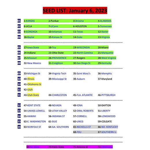 Sixth - this seeding system is not based on a a team’s own NET ranking.